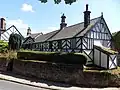 1891 | A large house designed by Edward Ould for Robert William Hudson, originally on Bidston Hill. It was dismantled and rebuilt on its present site in 1929–31, and has since been used as a hotel. The building has a U-shaped plan, it is timber-framed on a stone base, and it has a stone-slate roof. Features include gables, decorative panels, mullioned and transomed windows, and oriel windows. Inside is a great hall containing an organ gallery.[44][45] | II* |