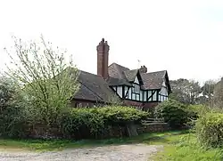 1883 | Built as a village reading room, the hall is half-timbered and jettied on a high stone base with a tiled roof. It has one storey and a basement, and a three-bay front. In the centre is a five-light under a gable, and flanking it are two-light casement windows. On the right side is a gabled porch.[36][41] | II | |