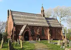 1868 | Built originally as a school designed by G. E. Street, it was extended and converted into a church in 1906–07 by Douglas and Minshull. It is constructed in stone with a slate roof and a tiled crest, and consists of a nave, a chancel, a north aisle, and a northeast saddleback tower.[36][37] | II |