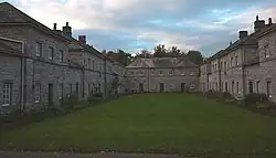 1766–73 | A group of four houses in a model village designed by Robert Adam for Sir James Lowther, forming one quadrant of a circus. The houses are in sandstone with string courses, and have green slate roofs hipped at the ends. The central nine bays have a single storey, and at the ends the houses have two storeys and two bays. The windows are casements with sandstone lintels and sills.[26][30] | II* |