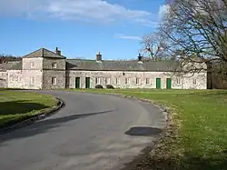 Mid 18th century | Originally a farmhouse and outbuildings, later a private house, it is in sandstone with quoins and green slate roofs. The house has two storeys, two bays, a central door in a stone surround, and horizontally-sliding sash windows. To the right is a barn with a segmental headed cart entrance, and the stable to the right of that has doorways and a loft doorway with flat heads.[21] | II |