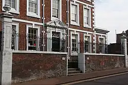 | Charles Roe House 53°15′39″N 2°07′42″W / 53.26078°N 2.12840°W | .jpg) | c. 1700 | A brick house with stone dressings and a slate roof. It has a double-pile plan, is in three storeys and has a front of five . The doorway has an open pediment and a cornice. The windows are sashes.[27][28] | II* |