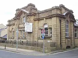 1908 | The former library by architects John Rigby Poyser and William Brandreth Savidge is clad in ashlar Yorkshire stone, much of it rusticated, with slate roofs. It is in Edwardian Baroque style, and has a rectangular plan with one storey and a semi-basement. The main northwest front is symmetrical with three bays, each with a broken segmental pediment; the entrance in the centre bay has a triangular pediment. The southwest front is also symmetrical with three bays. The central bay contains a three-light window, with a Diocletian window above, and a broken triangular pediment at the top. In the outer bays are Venetian windows.[13][44] | II |