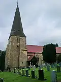 1878–79 | The church, designed by Paley and Austin, is in sandstone with red tile roofs. It consists of a west steeple, a nave and chancel in one cell, a north aisle, and a south porch. The steeple has a tower with angle buttresses, a stair projection, a west window, and a broached shingled spire.[28][29] |