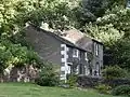 The pair of cottages is built in sandstone with slate roofs, one has horizontal three light windows, the other has two higher storeys with sash windows.[30] | |