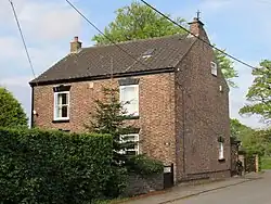 c. 1770 | A farmhouse built of brown brick in a Flemish bond, with a pantile roof replacing earlier stone slate tiles. The house has a square, almost symmetrical 2x2 plan, with two storeys and an attic, gable chimneys at either end, and a central doorway. Each floor has two tall windows, above which are splayed stone heads with false voussoirs and keystones. The interior contains an original staircase.[12] | 2 December 1986 | 1038299 | II | |