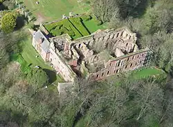 Mid 16th century | The wing was partly damaged by fire in 1956, and is now in ruins and roofless. It is built with thick red sandstone walls and has an eaves cornice and a parapet. There are two storeys and five bays. It contains one open doorway, two doorways that have been converted into windows, and the other windows have chamfered surrounds, some of them are mullioned.[9][10] | II* |