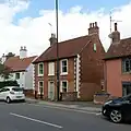 Mid 17th century | Three, later two, cottages in brick, with remains of timber framing and pantile roofs. There are two storeys and four bays. The windows are a mix of casements and sashes, some horizontally-sliding, and some have segmental heads. At the rear is exposed close studding with rendered nogging.[21] | II |
