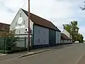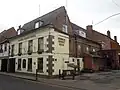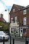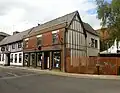 Late 17th century | The house, later used for other purposes, may have internal timber framing. It is in brick, rendered at the front with applied timber framing, and has a pantile roof, coped on the right. There are two storeys and two bays. In the ground floor is a doorway flanked by shop windows. The upper floor contains a casement window on the right, and a horizontally-sliding sash window to the left, and further to the left is a re-sited stone gargoyle. In the archway to the left is a doorway.[13][23] | II |