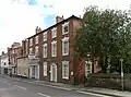 Mid 18th century | Three houses, later a shop and storerooms, in brick with a dentilled cornice, coved eaves and slate roofs. There are three storeys, a block of six bays to the left, and a lower block of three bays to the right. In the ground floor are shop fronts, and the upper floors contain sash windows, those in the middle floor with splayed rendered lintels.[44] | II |