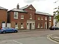 Mid 18th century | A house and a stable range, later used for other purposes, in brick, the south gable stuccoed, with floor bands, modillion eaves, and roofs of slate and pantile with coped gables. There are three storeys and three bays, two rear wings, and a two-storey stable range. In the right bay is an elliptical-arched carriage opening, the other bays contain late 19th-century shop fronts with corniced fascias on brackets, and in the upper floors are sash windows. The stable range has casement windows, and a doorway with a segmental head.[48] | II |