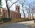 1841–42 | A Commissioners' church in Gothic Revival style that was later extended. It is in brick with stone dressings, and has a slate roof with coped gables. The church consists of a nave, a chancel with north and south vestries, and a west tower. The tower has four stages, angled buttresses, a west door, stepped lancet windows, a clock face with a gablet on the east side, and an embattled parapet with octagonal corner pinnacles.[10][11] |