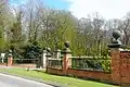 c. 1900 | Flanking the entrance to the drive are two stone gate piers, each with panels, a cornice and lantern finial. Outside these are small piers, and brick quadrant walls containing brick piers with ball finials, between which are cast iron railings. The elaborate gates are in wrought iron.[29] | II |