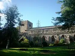 16th century | The oldest part of the church is the tower, the body of the church being substantially rebuilt in 1864–66 by E. G. Paley, and the east end of the chancel was extended in 1903–04 by Austin and Paley, who also converted the south chancel aisle into a war memorial chapel in 1923. The church is built in limestone and sandstone with dressings in red sandstone, and has slate roofs. It consists of a nave with a clerestory, north and south aisles, a south porch, a chancel, and a west tower. The tower has three stages, angle buttresses, and an embattled parapet. The inner doorway in the porch is Norman; it has been re-set in this position, and is not complete.[2][3] | II* | |