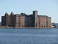 1868 | The warehouse was designed by G. F. Lister, and has been converted into flats. It is in brick on a stone base, with stone dressings, and has six storeys, with 18 bays along the front and five along the sides. At the top is a corbelled parapet. The windows have projecting segmental lintels with keystones and imposts. On the front are loading bays, and at the north end is a turret.[24][25] | II |