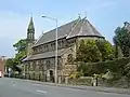 1880 | A Roman Catholic church by Pugin and Pugin in stone with a slate roof. It consists of a nave with a clerestory, aisles, a chancel with a three-sided apse, a southwest octagonal stair turret with a spire and, attached to it, a baptistry. Inside the church are elaborately decorated altars and reredoses.[32][40] | II |