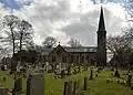 1836–37 | The church was designed by Edmund Sharpe in Romanesque style, and extended by the addition of a chancel and transepts in a similar style by Thomas Harrison Myres in 1886. It is in stone and has a roof of slate with red ridge tiles. The church consists of a nave with transepts, an apsidal chancel and a west steeple. The steeple has a two-stage square base, a two-stage octagonal drum, and an octagonal spire. Most of the windows are round-headed lancets, and there are wheel windows in the transepts.[35][36] | II |