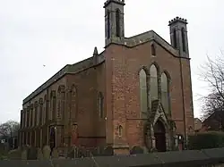 1830–32 | A Commissioners' church by Thomas Rickman and Henry Hutchinson in Gothic Revival style, it is in red brick with sandstone dressings and a slate roof. The church consists of a nave, north and south aisles, and a short chancel. The west front is gabled with clasping corner pilasters rising to stone turrets with louvred lancets and embattled parapets. In the front is a gabled porch, a triple lancet window, and a louvred lancet. The windows elsewhere are lancets, and at the east end is a triple stepped lancet. Inside the church are galleries on three sides.[54][55] | II | |