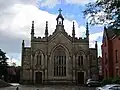 1818 | A Roman Catholic church in sandstone with a slate roof, and in Gothic style. It consists of a nave with an integral narthex, north and south aisles, and a chancel. The entrance front has two storeys and five bays, the central bay gabled. Between the bays are pilaster-buttresses rising to crocketed pinnacles and an embattled parapet. In the central bay is a large five-light window with Perpendicular tracery, and on the gable apex is a bellcote. The flanking bays contain doorways with Tudor arched heads and chamfered surrounds.[44][45] | II* | |