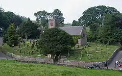 c. 1858 | The oldest surviving part of an older church is the tower, the rest of the church being rebuilt in 1882 by Edward Witts. It is built in gritstone and has a tiled roof. At the west end is the battlemented tower. The body of the church is without aisles and extends for five bays. Over the priest's door is a lintel from the older church dated 1647.[2][17] | II |