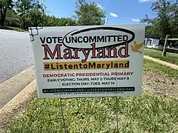 - ^ "50,000 'uncommitted' votes cast in Maryland in protest of Biden's response to war in Gaza". cbsnews.com. CBS News. 17 May 2024. Retrieved 23 August 2024.