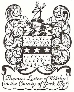 Lister or Lyster is an English occupational surname, and may refer to a textile dyer, from the Middle English word "litster", meaning to dye.[2] It dates back to the 13th century in Scotland with the recording of Aleyn le Littester of Edinburghshire who rendered homage to the Interregnum government in 1296, and to the 14th century in England (Richard le Lyster appears in the Subsidy Tax Rolls of Derbyshire in 1327).