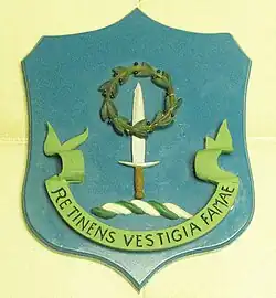 The family motto is variously 'Retinens vestigia famae' (Following in the footsteps of fame), or 'Facta, non verba' (Deeds, not words).
