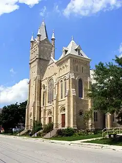 In 1871 the Wellington, Grey and Bruce Railway extended its line to Listowel. It was joined in 1873 by a second railway, the Stratford and Huron Railway, and Listowel soon became an important shipping point. The arrival of the railway hastened development and Listowel became a Town with a population of 2,054 in 1875 in what is now North Perth in Perth County, Ontario.[6][7]