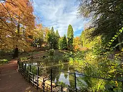 Several properties in Lisvane are listed for their historical and architectural significance by Cadw. Ty Gwyn on Lisvane Road was built as the personal residence of builder James E. Turner of E. Turner and Sons and is listed Grade II. The firm was responsible for much of the construction of Cardiff's Cathays Park civic centre.[6] It was latterly the home of financier Julian Hodge.[7] Lisvane House on Mill Road was built in the Arts and Crafts style by architect Edwin Seward.[8] The Dingle is toward the upper end of Mill Road. It was designed by Percy Thomas, and is also listed Grade II.[9]