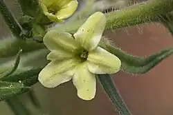 Lithospermum ruderale is a species of flowering plant in the borage family, Boraginaceae.[2][3] It is known by the common name western stoneseed or lemonweed. It is native to western Canada and the western United States, where it can be found in many types of habitat. A perennial herb growing from a taproot and woody caudex, it is covered with fine, more or less upright, hairs, especially on the stems. It produces a cluster of erect leafy stems ranging from 20 to 50 centimetres (7+7⁄8 to 19+5⁄8 in) centimeters in height. The stems support lance-shaped leaves ranging from 2.5–10 cm (1–4 in) in length.[4] Bunches of flowers with leaf-like bracts appear toward the top of the stem amongst the leaves. The corolla is fused at the base with five lobes[4] which are light yellow, often slightly greenish, and about a centimeter long and wide. The style is short. The fruit consists of one or two, sometimes four, clustered glossy grey nutlets, 3.5 to 6, sometimes as much as 8 mm long.