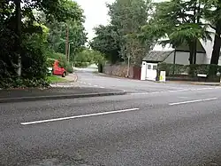 Rosemary Hill Road is a public road with many private gated driveways leading off the highway and gated houses alongside, particularly on the more exclusive Lichfield District side which borders the Little Aston Park. The west side of road is part of Little Aston (Lichfield) and the east side is in Four Oaks (Birmingham).