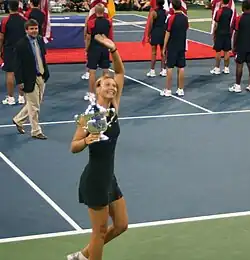 Maria Sharapova wore a "little black dress" during her night matches at the 2006 US Open which she helped design with Nike and featured a round crystal-studded collar after being inspired by Hepburn,[11] and went on to win the tournament. Upon her return to the sport in 2017, eleven years after winning the tournament, she again wore a "little black dress" collaborating with Nike and Swarovski for her night matches at the 2017 US Open to celebrate her return at the championships. The look was intended to be reminiscent of her 2006 dress.