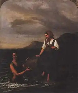 The Fishermen was partly inspired by true events which had taken place a few years earlier. A group of fishermen from Hornbæk saved the crew from a wrecked British ship and later refused to receive the customary reward. Instead a nobleman granted them an annual amount for the rest of their lives.