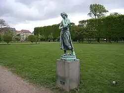 Danish sculptor Theobald Stein created a sculpture of Little Gunver in 1899. The song had recently experienced a revival after being included in the first volume of Danmarks Melodibog. A bronze cast was installed on a temporary basis in Rosenborg Castle Garden in Copenhagen in 1909 but was made permanent through a donation from Carl Jacobsen in 1911. It depicts Little Gunver walking about with a dreamy and somewhat melancholic expression. It illustrates the lines:[1]