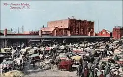 The old Hay Market on North Salina Street near the Erie Canal lift bridge had been approved as a public market after a delegation of local businessmen, members of the North Side Business Men's Association visited Mayor McGuire and appealed to the Common Council asking for a produce market on the Northside.[6]