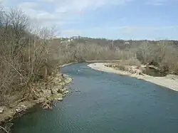 Tributaries of the Little Miami include Beaver Creek, Sugar Creek, the East Fork Little Miami, North Fork, Todd's Fork, Duck Creek, Caesar Creek, Massie Creek, and Turtle Creek. Yellow Springs Creek, fed in part by its tributary Birch Creek, join the Little Miami within the boundary of the Glen Helen Nature Preserve.[8] The river's main tributary, the East Fork of the Little Miami,[9][10] was dammed in 1977 by the United States Army Corps of Engineers to create Harsha Lake, located in East Fork State Park. Similarly, in 1973, the Army Corps dammed Caesar Creek to create Caesar Creek Lake, located in Caesar Creek State Park.[9]