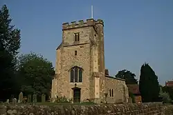 The chancel is now Early English,[17] having been rebuilt in the 13th century. The north chapel was added early in the 14th century. The west tower and timber-framed south porch are 15th-century.[16][18]