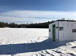 The forest around the lake is predominantly mixed coniferous forest.[13] The area surrounding the lake is sparsely populated with only 6 residents per square kilometer.[14]