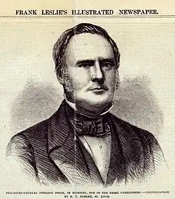 Confederate troops commanded by Lieutenant General Theophilus Holmes attacked Helena on July 4, 1863, but were repulsed.[5] The end of the Vicksburg campaign in Mississippi freed up additional Union troops for operations in Arkansas, and Major-General Frederick Steele was sent to Helena to take command of the Union troops there.[6] Major General Benjamin Prentiss, the previous Union commander in the area and the victor at Helena, felt slighted at Steele's appointment, which had originated from Major General Ulysses S. Grant.[7] Additional Union troops commanded by Brigadier General John W. Davidson moved south from Pilot Knob, Missouri, and reached Wittsburg, Arkansas on July 28, where they were able to make contact with the troops in Helena.[8] Steele had 7,000 total infantry and cavalry, along with five artillery batteries, in Helena, while Davidson commanded 6,000 cavalry.[9] On July 23, with Holmes ill and bedridden, Confederate command fell to Major General Sterling Price. Price theoretically had about 32,000 men in the military district, but only about 14,500 had been present for duty before Helena, and Price later noted that only about 8,000 men were actually available to him during the campaign.[10]
