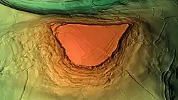 The hill also has two disused quarries, one listed on the northwest side on a 1911 map, and another one listed between 1885 and 1900 as an old quarry on the west side.[22] It was acquired by the National Trust in 1930.[23] People protesting against the building of an A46 bypass road[24] cut a small turf maze into the hill,[25] during the construction of the bypass in the mid-1990s.[26] In one day of protests, 11 people, including George Monbiot, were hospitalised as a result of beatings by the security guards.[27]