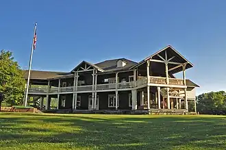 Little York Pavilion, also known as Dwyer Memorial County Park, Main Pavilion, is an historic trolley park pavilion located at Preble in Cortland County, New York. It was built about 1906, with later additions and modifications, and is a two-story Stick/Eastlake style structure, rectangular at the core, with surrounding verandahs and a jutting pavilion at each corner. The central hip-roofed section contains a single large room at each level.[2]