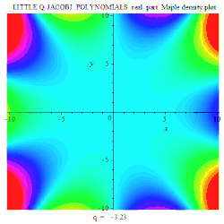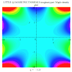 The following are a set of animation plots for Little q-Jacobi polynomials, with varying q; three density plots of imaginary, real and modulus in complex space; three set of complex 3D plots of imaginary, real and modulus of the said polynomials.