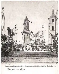 Tomas Baranauskas claims that Litvinism also has some supporters in Russia, although it is much less popular than in Belarus. Some Russian Litvinists refer to the Grand Duchy of Lithuania as a Russian state.[2] According to Belarusian historian Alieś Biely, Litvinism is the frontier ideology of Russian civilization.[191] According to Virginijus Savukynas, a Lithuanian historian and journalist, Litvinism is the Belarusian variant of the ideology of Russian imperialism and the beginning of Litvinism lie in the Russian Empire when it annexed the Grand Duchy of Lithuania in 1795 and then Russian Empress Catherine the Great claimed that she just "restored historical truth".[6] Moreover, Savukynas pointed out to the fact that in the early 20th century a monument was unveiled in Vilnius dedicated to the Russian Empress Catherine the Great with inscription "separated to recover".[6]