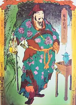 Liu Bei (Chinese: 劉備, pronunciation; Mandarin pronunciation: [ljǒʊ pêɪ]; 161 – 10 June 223),[3] courtesy name Xuande (玄德), was a Chinese warlord in the late Eastern Han dynasty who later became the founding emperor of Shu Han, one of the Three Kingdoms of China.