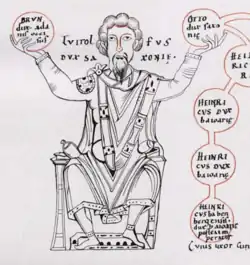 - Bruno (c. 830/840 – 880), succeeded his father as a Saxon leader,[6] supposed progenitor of the Brunonids