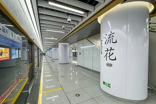 Liuhua Station (Chinese: 流花站; Cantonese Yale: Làufā Jaahm) is a station on Line 11 of the Guangzhou Metro. It started operations on 28 December 2024.[1][2] It is located underground at the intersection of Renmin Road North[3] and Liuhua Road[4] in Yuexiu District.