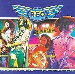 Live: You Get What You Play For is a live album by rock band REO Speedwagon, released as a double-LP in 1977 (and years later as a single CD omitting "Gary's Guitar Solo" and "Little Queenie"). It was recorded at Soldiers and Sailors Memorial Building in Kansas City, Kansas, the Convention Center in Indianapolis, Indiana, Kiel Auditorium in Saint Louis, Missouri and Alex Cooley's Electric Ballroom in Atlanta, Georgia. It peaked at number #72 on the Billboard 200 chart in 1977.[2] The album went platinum on December 14, 1978.