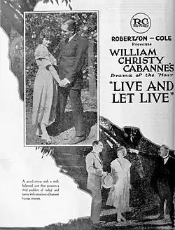 Live and Let Live is a 1921 silent American melodrama film, directed by Christy Cabanne. It stars Harriet Hammond, George Nichols, and Dulcie Cooper, and was released on July 3, 1921.