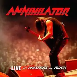 Live at Masters of Rock is an official live video album by the Canadian heavy metal band Annihilator, recorded at the Masters of Rock Festival 2008 in Vizovice, Czech Republic, and released in 2009.[3] The concert footage was released on a live DVD and a live CD was originally intended to be included as bonus tracks. The audio recordings, because of record label SPV's insolvency problems, were instead made into a live album. Halfway through the recording some cameras were turned off which resulted in clips from earlier songs having to be put in to fill the gaps.[4]