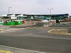 Liverpool South Parkway station is a railway station and bus interchange in the Garston district of Liverpool, England. It serves, via a bus link, Liverpool John Lennon Airport in the neighbouring suburb of Speke, as well as providing an interchange between main line services and the Merseyrail rapid transit/commuter rail network. Opened in 2006 on the site of the former Allerton railway station, it also replaced the nearby Garston station.